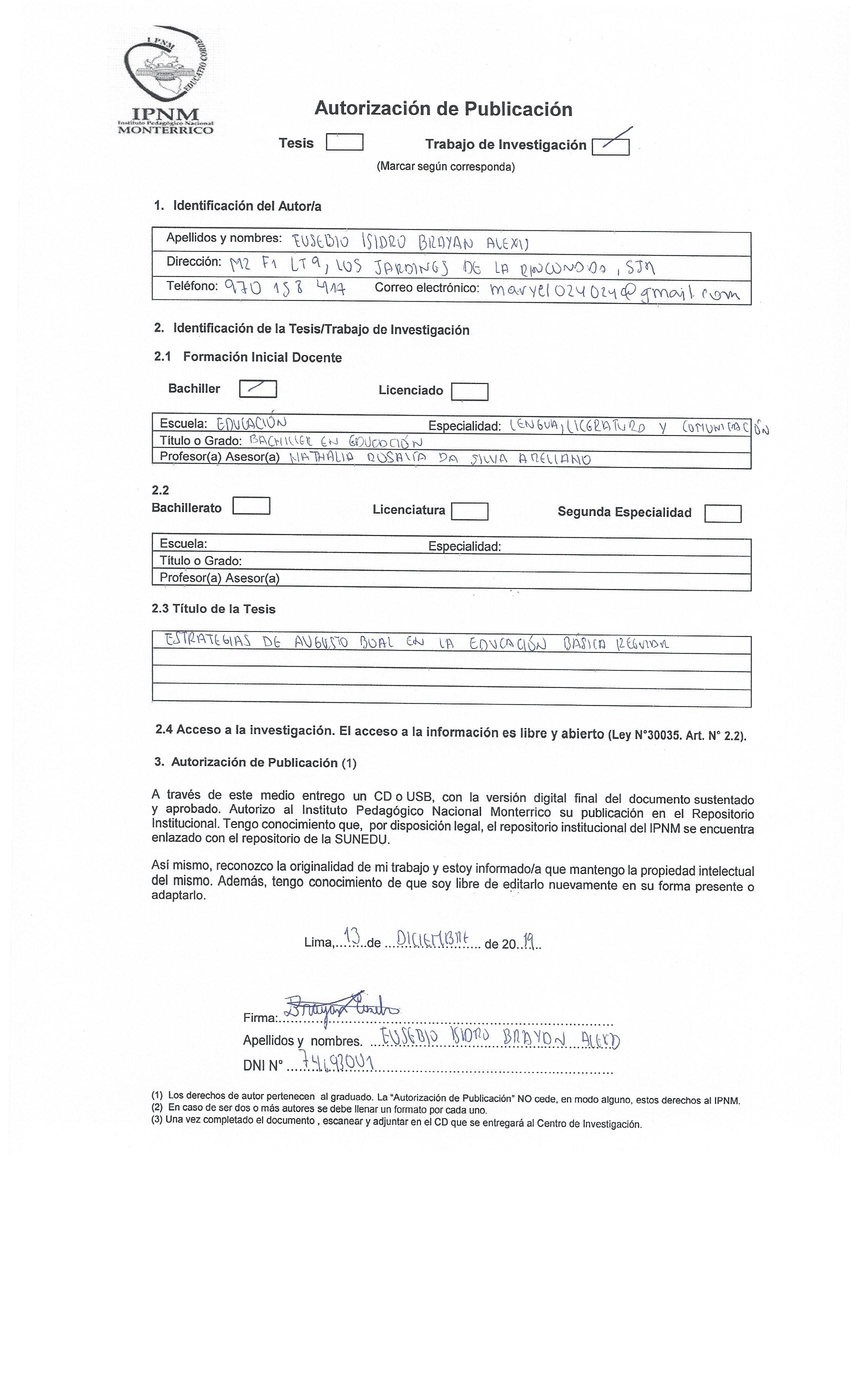 Trabajo de investigación para optar el grado académico de Bachiller en Educación.