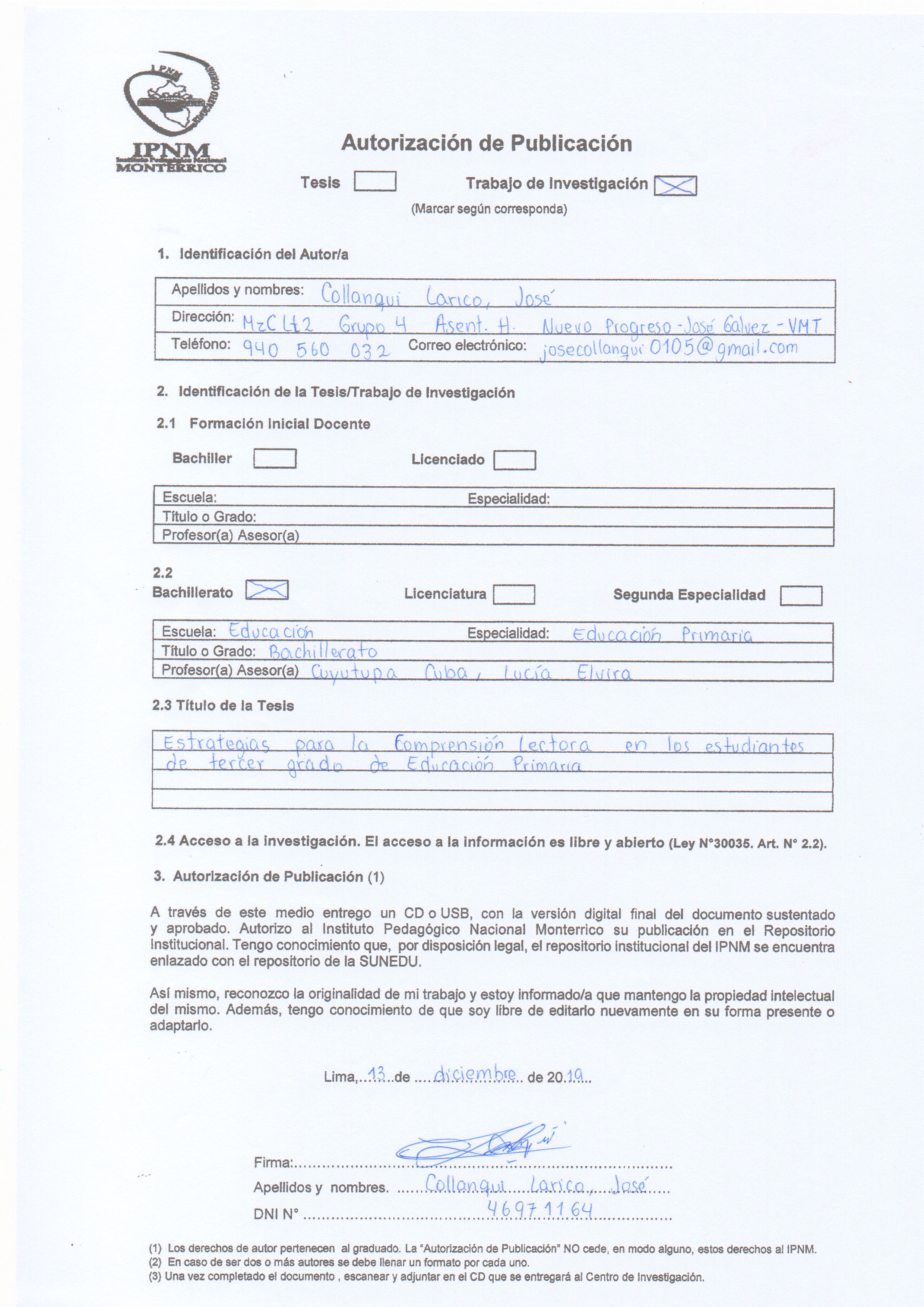 Estrategias para la comprensión lectora en los estudiantes de tercer grado de Educación Primaria