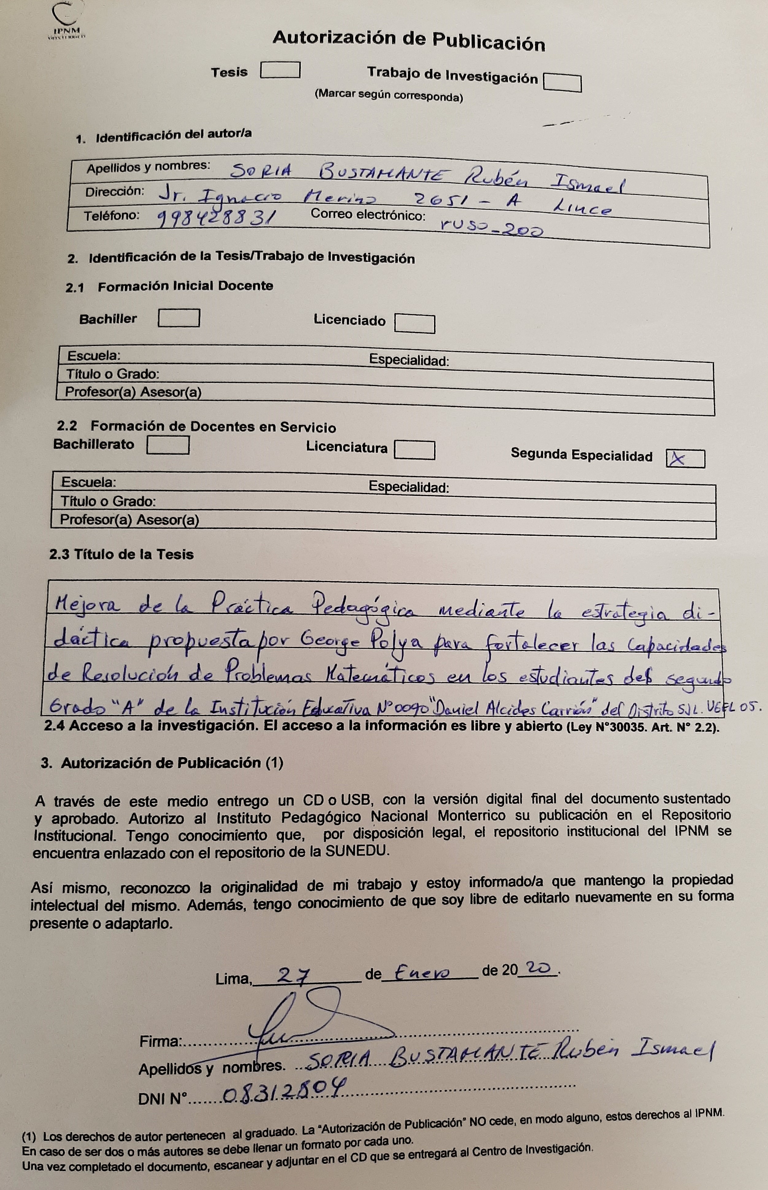 Mejora de la práctica pedagógica mediante la estrategia didáctica propuesta por George Polya para fortalecer las capacidades de resolución de problemas matemáticos en los estudiantes del segundo grado “A” de la Institución Educativa N° 0090 “Daniel Alcides Carrión” del distrito de San Juan de Lurigancho - UGEL 05