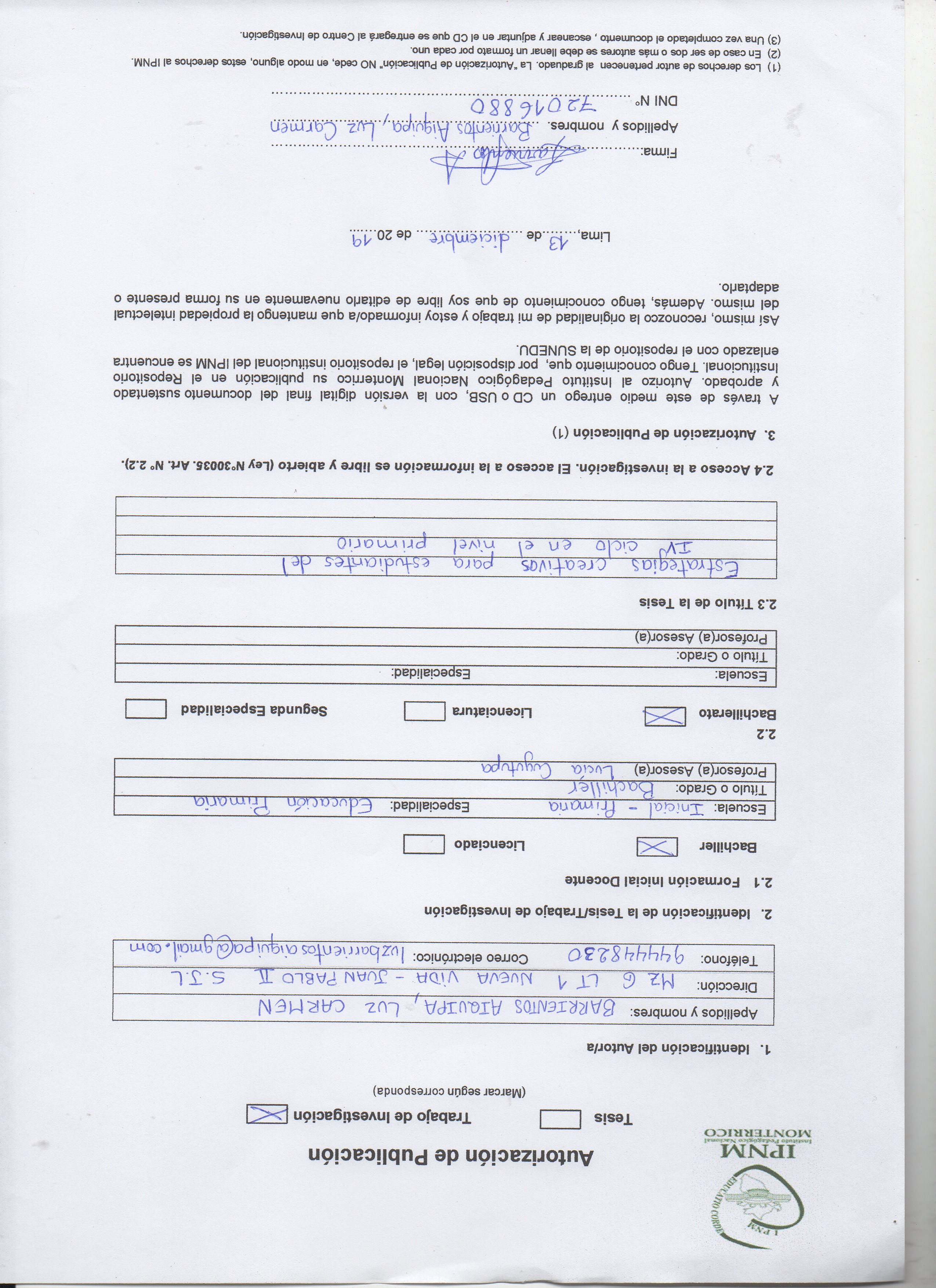 Trabajo de investigación para optar el grado académico de Bachiller en Educación.