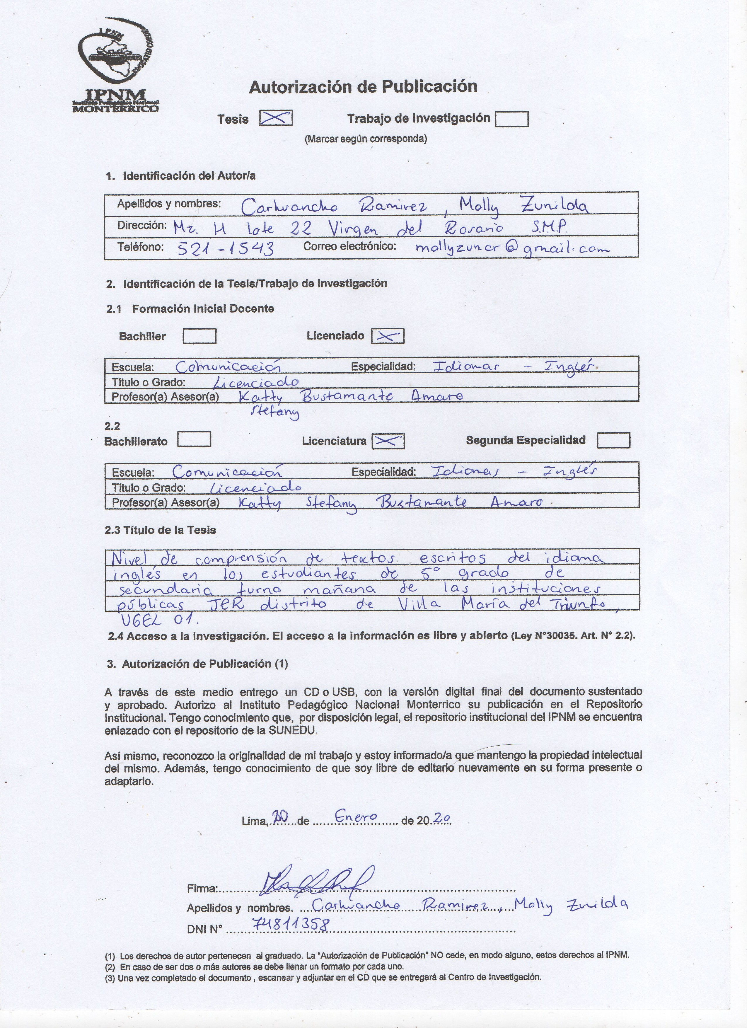 Ante esta problemática, el presente trabajo está enfocado en comparar el nivel de comprensión de textos escritos del idioma Inglés en los estudiantes del 5° grado de secundaria de las instituciones públicas JER distrito Villa María del Triunfo, UGEL 01 con el fin de dar a conocer las dificultades que tienen los estudiantes en las micro y macro habilidades correspondientes.