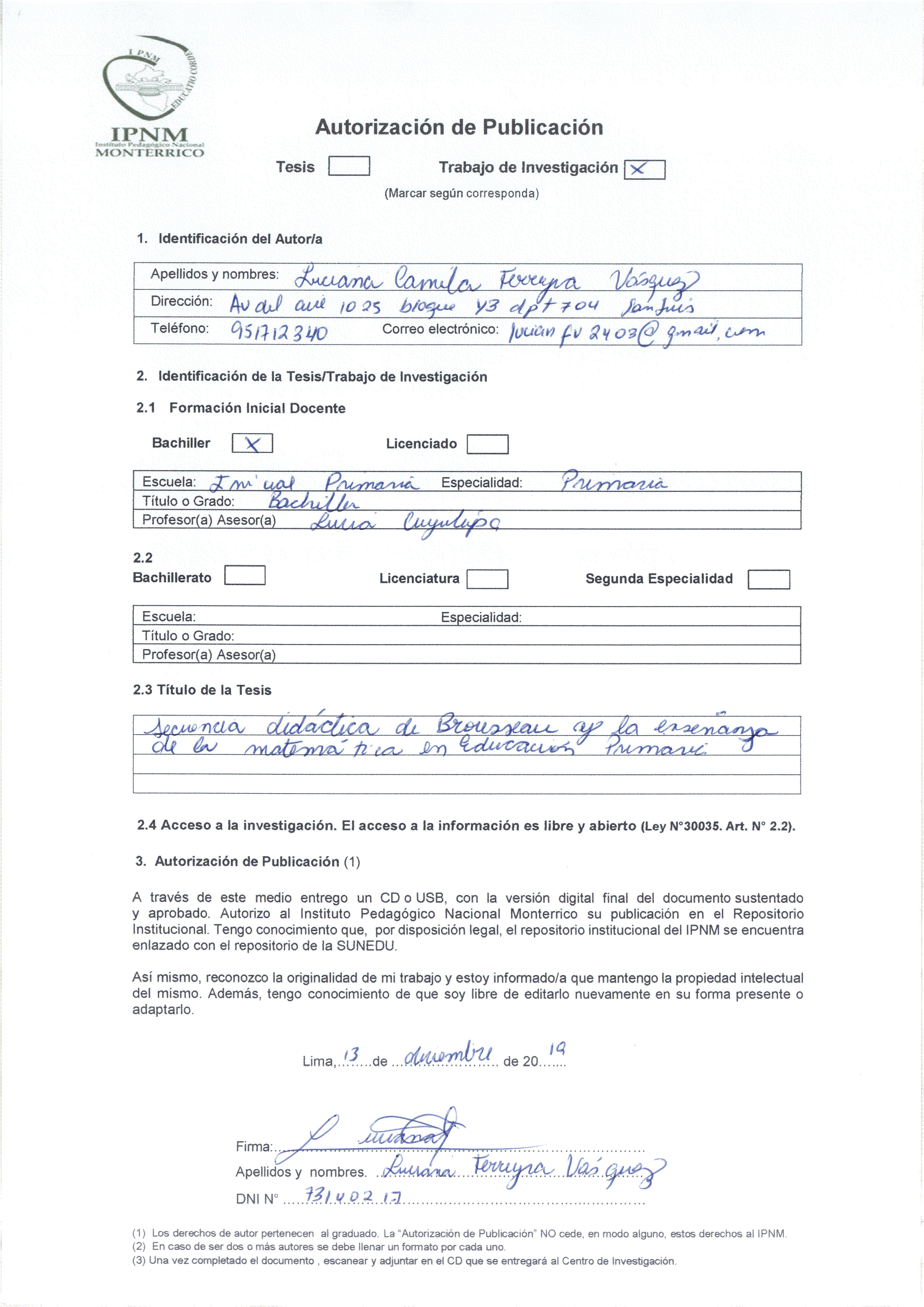 Trabajo de investigación para optar el grado académico de Bachiller en Educación.