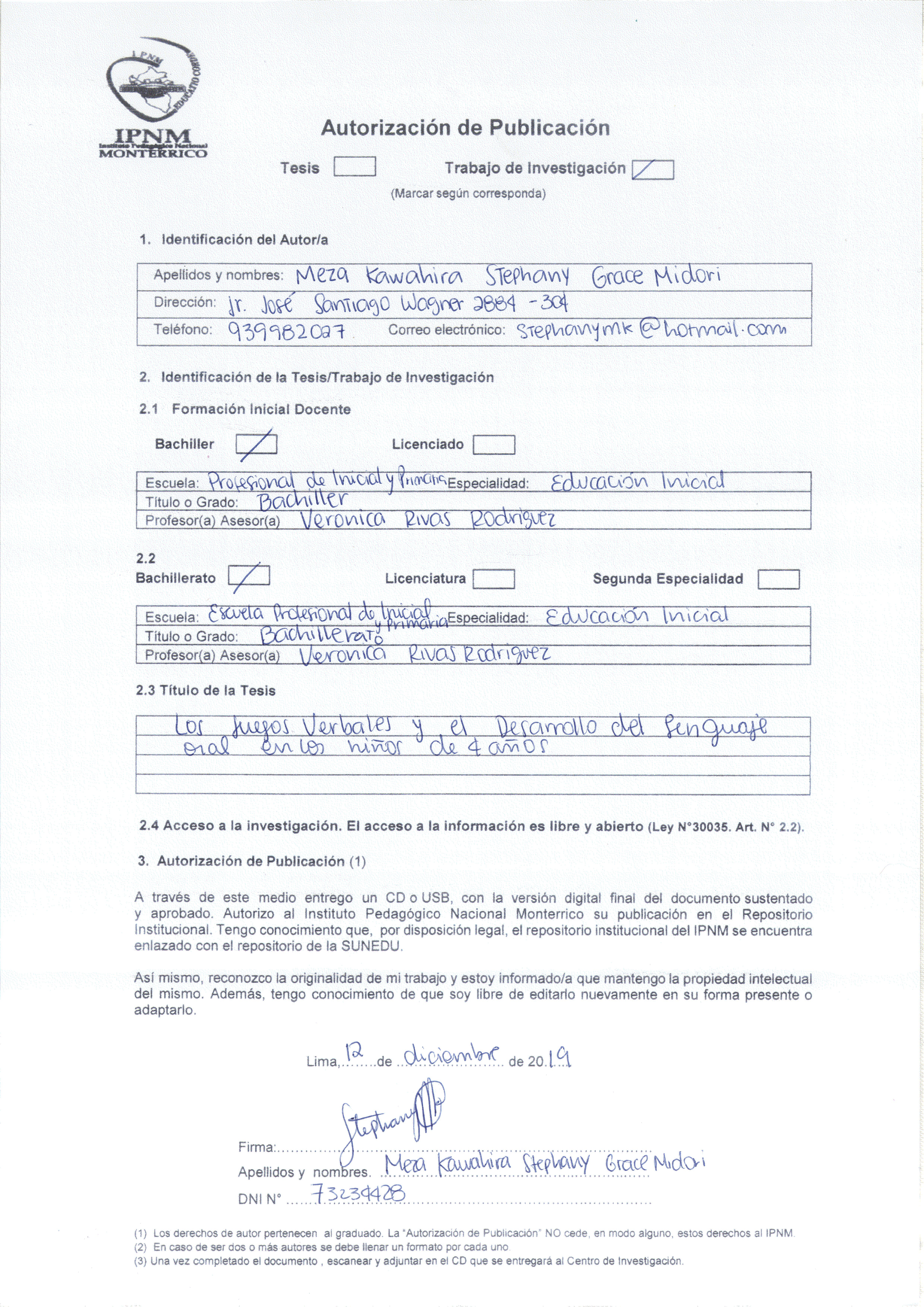 La presente investigación tiene como objetivo fortalecer el desarrollo del lenguaje oral en los niños de 4 años a través del juego y la creatividad.