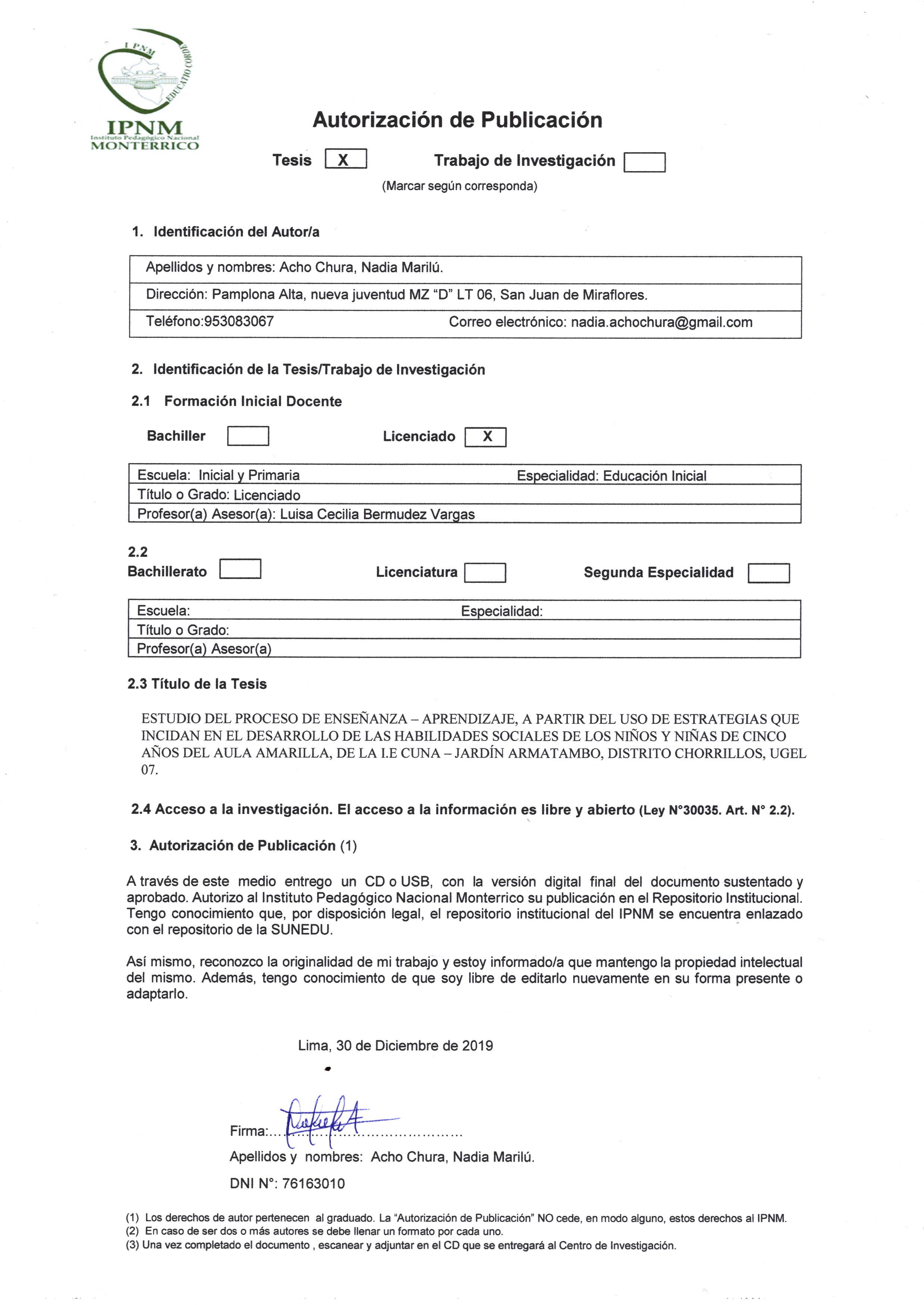 Estudio del proceso de enseñanza – aprendizaje, a partir del uso de estrategias que incidan en el desarrollo de las habilidades sociales de los niños y niñas de cinco años del aula amarilla, de la I.E. Cuna - Jardín Armatambo, distrito Chorrillos, UGEL 07